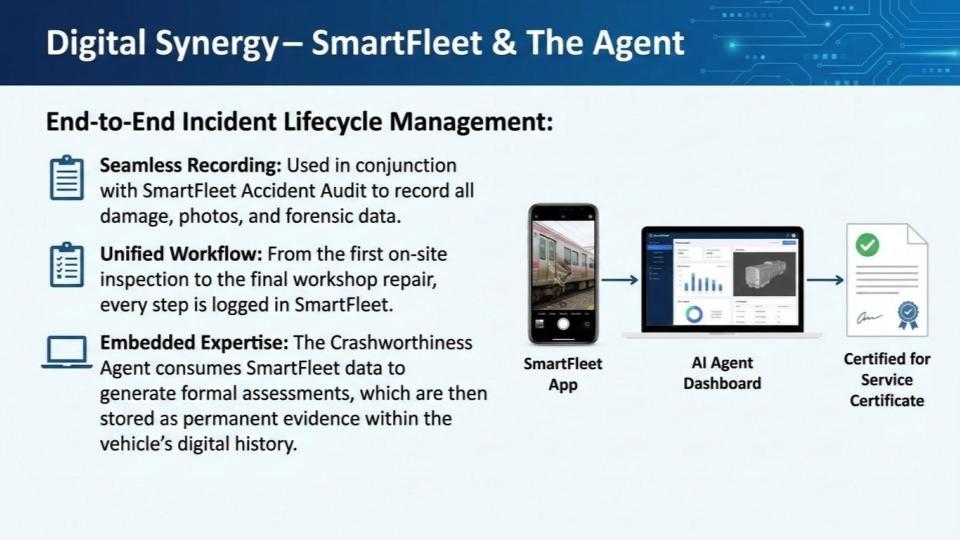 Discover how leading UK rail companies are using AI Crashworthiness Agent with SmartFleet Accident Audit solutions to enhance repair efficiency, ensure compliance, and drive operational excellence.